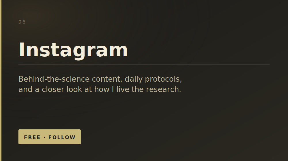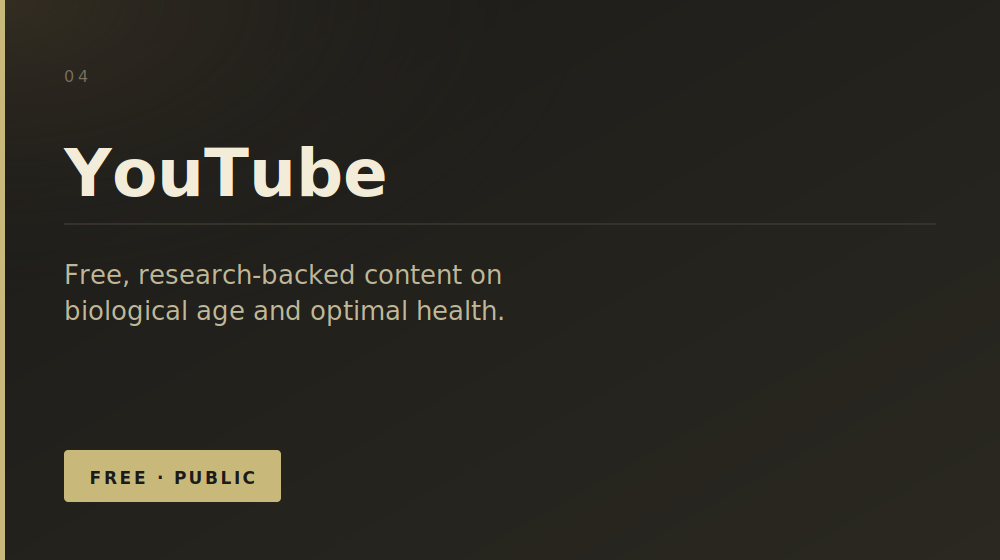 Watch my Youtube videos to discover effective, science-backed strategies to improve your healthspan, energy, and longevity — explained clearly and practically.